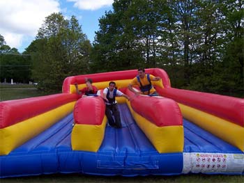 ![]() Non-stop action awaits you in our new DEFENDER DOME™. Defend your goal against the three other players in the fastest moving inflatable game ever created. Four Players face off against each other on an angled surface with a goal of their own to defend against any of the other players from any direction attempting to score on your goal. UNBELIEVABLE FUN! Dimensions Safety is our #1 Priority! Inspected and certified by Massachusetts Department Of Safety. Our staff is trained to provide excellent planning and support for all types of events and functions. | |